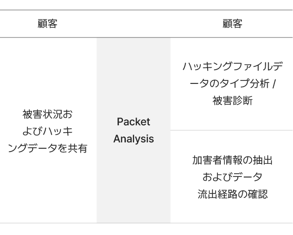 ハッキングファイルのデータを分析し、専門家が直接被害状況を診断します。