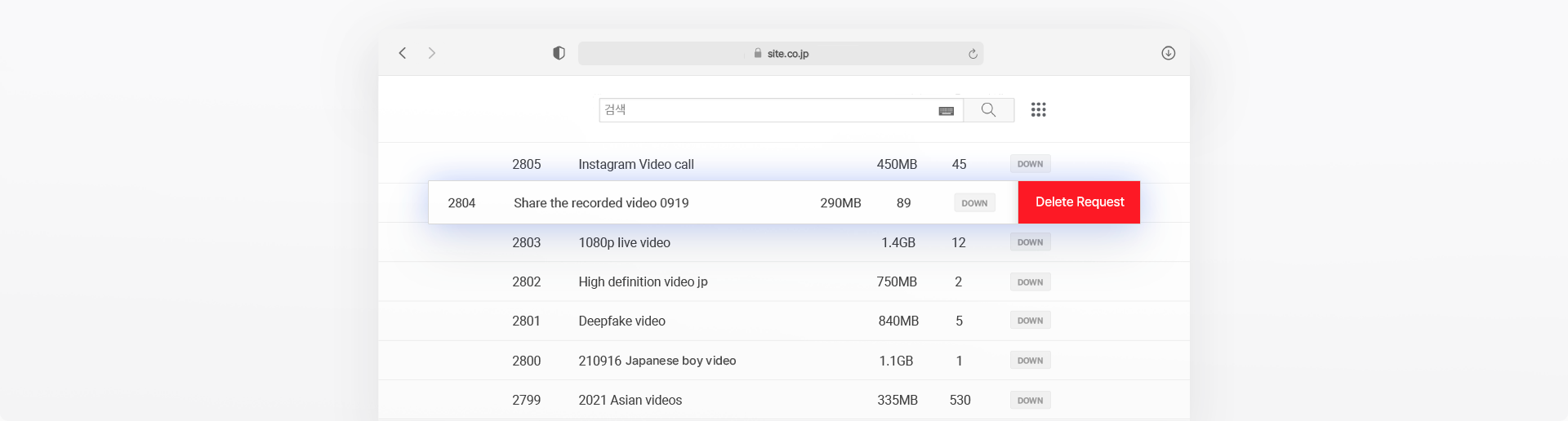 ウェブ上で拡散されたデータが発見された場合、デジタルミレニアム著作権法(DMCA)に基づき、該当投稿の即時削除要請を行います。